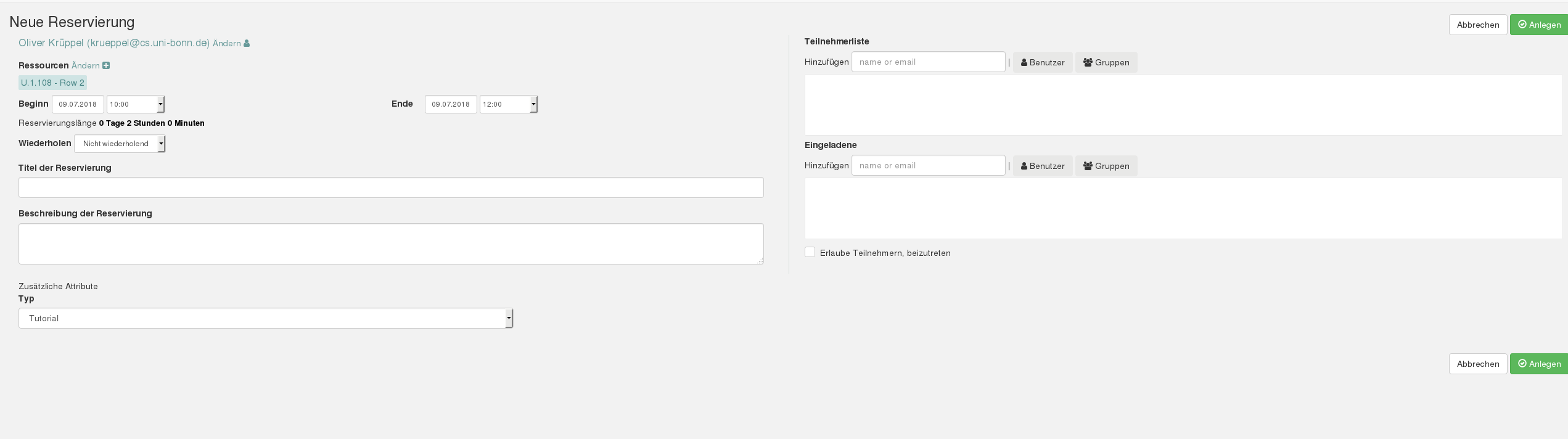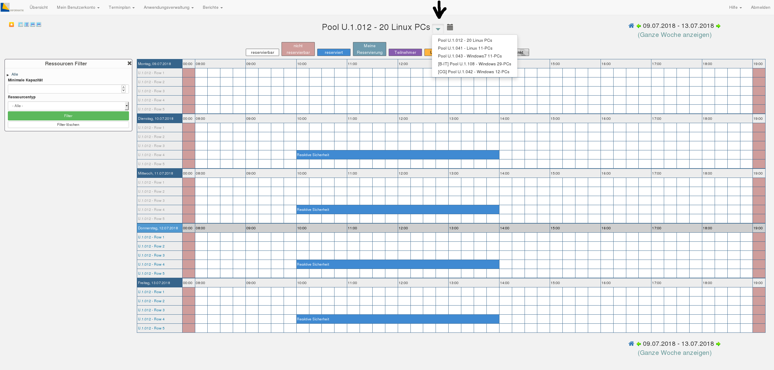 Wir nutzen dieses System, indem wir jeden CIP-Pool Raum als eigenen Terminplan darstellen, sodass Reihen einzeln buchbar sind. Alle anderen Räume wie Meeting-rooms und sonstige reservierbare Räume sind in Terminplänen der einzelnen Institut Teile zu finden.