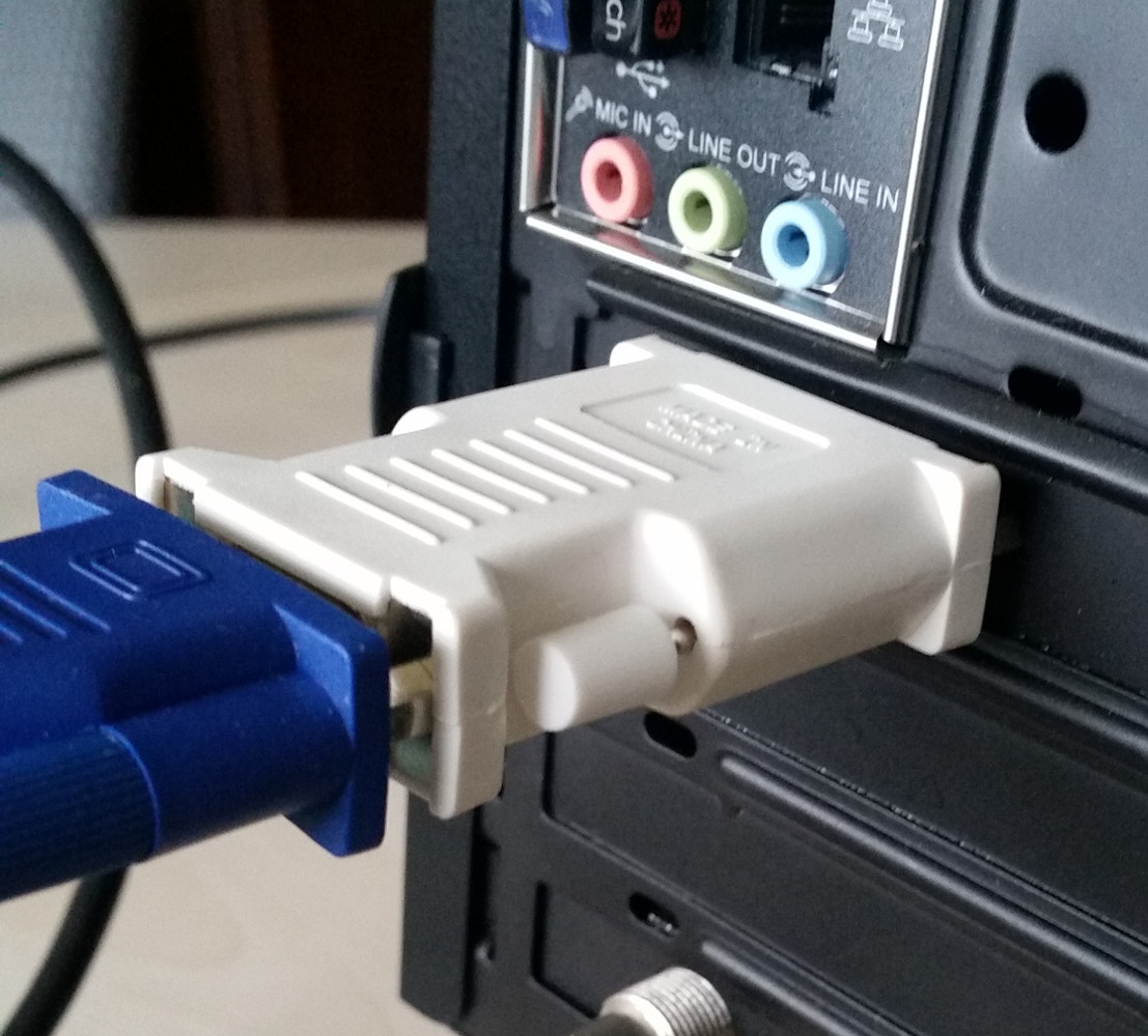 Verbinden sie den DVI Stecker des VGA zu DVI Kabels mit dem DVI Eingang des